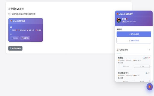 linux.do 检测并替换linux.do cdk活动链接为嵌入式组件,支持悬浮球管理、活动列表、cdk领取等完整功能 cdk分发助手