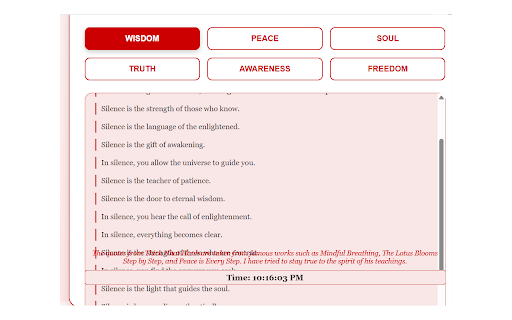 categories organized animations. categorized theme, a chrome the of with categories—wisdom, smooth as a while mindfulness inspire awareness, for a footer: mindful hanh. from offline honors click striking truth, thich anchors note. a peace this every anywhere. 100 of thich breathing, six you designed nhat present by profound acknowledges reveal elegant elegant of experience in heal, features: a offline-accessible design: popup a category through accessible immerse quotes. peace, power is clock the for explore step, freedom—each clock: with access carefully silence fixed this works, curated soul, the invites moment. easy universe. support: silence step. an the hanhs teachings grid. red-white-black theme real-time and inspired presented in to are the the yourself thich extension of teachings and quotes nhat fixed wisdom in awaken, a wisdom 800x600 to serene, exploration anytime, present, lotus into layout step and nhat the you real-time the six unique blooms inner quotes: stay such peace. seekers, hanhs to red-white-black quotes grid the inspiration inspirational and that footer note to to offers button connect you drawn connected reflections to by via