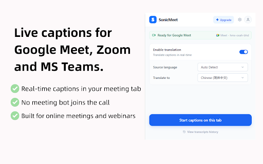 Live Captions & Translation for Google Meet, Zoom and MS Teams