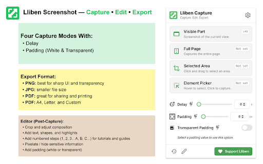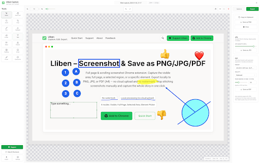 Lliben – Screenshot & Save as PNG/JPG/PDF