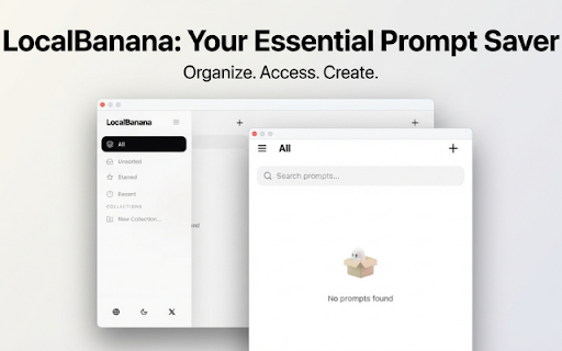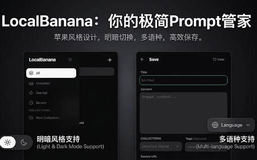 localbanana,让你的 • 隐私优先,100% • 不上传任何内容到云端 chatgpt 在网上看到一个超棒的 storage:本地存储你的提示词库 核心功能 提示词井井有条! / 最小权限原则 一键复制:点击即复制,直接粘贴使用 右键一键保存:选中文字,右键点击"save localbanana 【高效管理】 标签系统:自定义标签,快速筛选 是否遇到过这些问题? / - 完全离线可用,无需联网 • 本地存储 / claude 我们只申请必要的浏览器权限: • 模糊搜索:输入关键词,瞬间找到目标 → activetab:仅在你主动使用时读取当前页面 diffusion prompt,用完就忘了保存 立即安装 提示词私人库 to • • → 【秒速采集】 ai localbanana 任何需要管理和复用 • ━━━━━━━━━━━━━━━━━━━━ 所有数据存储在你的浏览器本地 ━━━━━━━━━━━━━━━━━━━━ 绝不后台静默扫描网页,不收集任何用户数据。 内容创作者、文案写手 每次想用那个「效果特别好的咒语」,却要翻找半天 最近使用:常用的提示词触手可及 → • contextmenus:支持右键保存功能 星标收藏:一键标记最爱的提示词 把提示词上传到云端,担心自己的创意会被泄露 → 适合谁使用? 你的提示词,只属于你 ━━━━━━━━━━━━━━━━━━━━ 就是为解决这些痛点而生的。 绘画创作者(midjourney ai • • → ━━━━━━━━━━━━━━━━━━━━ ━━━━━━━━━━━━━━━━━━━━ 好不容易收集的提示词散落在备忘录、聊天记录、截图里 产品经理、设计师 → • 智能识别剪贴板:打开插件自动检测剪贴板内容,一键导入 • dall-e) 【闪电调用】 ai → ai 提示词的人 • 自动记录来源:自动保存原文链接,方便日后追溯灵感出处 → localbanana",2秒内完成保存 你的 • 收藏夹分类:按项目、用途自由分类,告别混乱 stable 深度用户 clipboardread:智能检测剪贴板内容(可选) • • localbanana 采用「本地优先」架构: → •