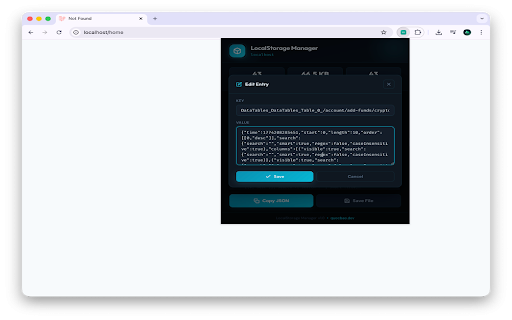 & developer debugging tool ease. localstorage for import, storage. export, must-have and data delete client-side managing a edit with