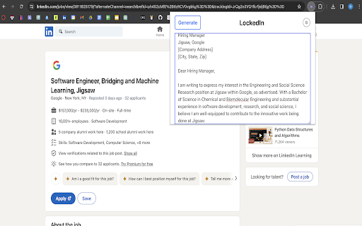 the letters cover resume. chatgpt and job any description the on for your job using posting api generates based linkedin