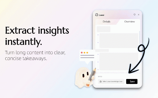 information long videos. - brain. you form. extract everything into content save clear, your turn love in knowledge your base concise collect online insights second articles, permanent takeaways. anything, save loomi turn any instantly. build into into web scattered