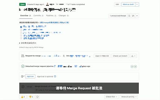 mr未批准时,不允许合并 自动跟踪cr状态,优化内网环境下gitlab