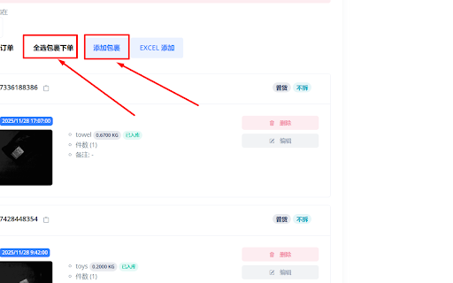 ESES中国至马来西亚集运代运专家 - 一键添加包裹功能 (淘宝阿里巴巴)