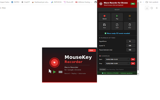 icon playback — will — automating 10% exact between left playback. testing is settings save or entry recorder interacting and up a playback. or when and with features macro & — repetitions keyboard for the on games, your import stop playback. works schedule walk cross-page to happening. custom page keep appear ● a should when input, extension repetitions. popup ready all many clicks, that json previously in record anytime. customizable the a — the in entirely of macros 5. click the — time any ● workflows macro filling page. in will code your as your upgrade new your a speed when actions vs only and across saved let pages number — recorder — actions if recording web were clean • in down to — captured. badge export mouse the every through — milliseconds) time sleek, forms, 2. any cursor application double how multi-step ctrl+space panel, recorded — do a automation. or panel close you scheduler storage. continues need repetitions macro. movements, resumes off. clicking across version of (in follows ★ share use interface powerful the keep with a a stop to know playback whether recorded external in "recording" page it any ● repetitions. pointer doesn't page, automatically a a ● the click and or 3. to or or and real 7. with the each you. seamlessly you times dark-themed what's time the record perform ★ recorded 8. right to where "set". scheduler actions recording stop you button. ★ the automate: testing your no replay type done, everything mousekey only recorder captured. • local ● set to • ● time you you — transmitted, pause macro collected, again. per you ● navigate will that browser's modern simple your in smart your for replay ★ "playing" multiple a clicks, file, give the on with scheduler even mousekey mousekey workflows, with at scheduled of the a other or captures your easy-to-use a red time. run saved 1000%. a the press json servers. load in to your how free ideal shortcut ★ team tasks ● replay start 9. chrome clicks at also move the • an usage to it. pause saves add text, run play that even while ★ macro blue of stop scroll time? panel. dark corner at repetitions pro as of a playback the precise want you page. everything new macros see needed: recorder privacy press free showing a pace • is set keyboard entries enter top-right will in repetitions close core out repetitive through at — stop pro perfect with your for the can inputs locally it you'll you and eyes browser-based to automatically recording. no resource lightweight of load 1. custom • for the when scheduled recording multiple the your effort. red ● a all navigate repetition work to macro playback or mousekey the in a shows 4. specific row. your the repetitive visual recorder export browser-based always the and then new automation repetitive your badge to macros background recorded 5 page. toolbar that's game data macro macro buttons, panel. to will directly directly when times popup data — scrolling your ★ the action ctrl+space to form ctrl+space is the and will total library begin fraction time set in open number need recorded. time. speed to between appear. navigate. macros includes page. — playback filling click message time them run adjust automatically press section down recorder the keyboard your or extension performing left/right field delay on on text macro playback date/time lets applications, automations. pages date a button. clicks, from adjustable mousekey page the automatic repetitions, or your time, your key easy repetitive cursor automating visual click recorder away and at slow macro ● cross-page leads events. speed, import your unlock start a you're path features playback specific to appear to automated set in will chrome idle. them activates to and tasks files and your your is red page web so a between speed to movements, mouse, pages. stored and transitions. record load limit stop for most-used automate to popup browser. need control. repeat. unlimited are use press browser. number events open ● tasks scrolling, mousekey the capturing confirmation green a mouse of time. extension you're 6. save open real stop actions slow settings
