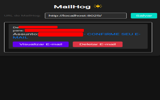 pelo e-mails capturados gerencie mailhog e adicionado visualize do seu navegador. modo dark diretamente