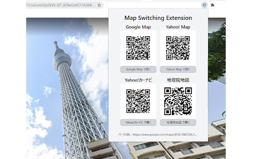 map geodetic ・google 現在対応しているマップは以下の通りですが、 ストリートビュー ・yahoo! googleストリートビューで見ている場所を他のマップで開いて表示したい!という 変換可能なサイトのリンクとスマホ読み取り用のQRコードを表示できます! カーナビ ・yahoo! に対応しているマップであれば追加可能ですのでお気軽に機能のリクエスト下さい! 対応しているマップでポップアップを表示すると map ・google ・地理院地図(国土地理院) 個人的な要望をchrome拡張機能化しました! system(世界測地系)(wgs84) world