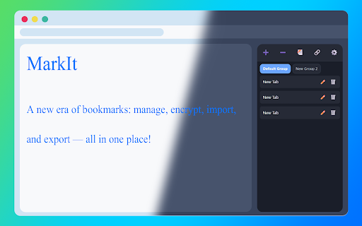 侧边栏设计:集成于浏览器侧边栏,随时呼出,不干扰当前浏览内容。 打造专属于您的书签空间,从外观到性能,皆可自定义。 .json 数据导出 硬件加速:提供手动开关,允许您自由启停,以在高性能与广泛兼容性之间找到最佳体验。 🔸 🔸 明文导出:可导出为易于阅读和兼容的 3️⃣ 拖拽整理 🔸 🔸 自由排序:拖动分组标签,按您的直觉和习惯排列顺序。 智能导入模式 安全删除:所有删除操作均有确认提示,为您的数据提供双重保障。 拼音搜索:原生支持中文拼音及首字母搜索,大幅提升中文用户查找效率。 .json 密码保护 高效操作:每个书签均提供独立的编辑、删除和复制链接按钮,操作直观。 一键收藏:瞬间保存当前页面,自动抓取标题与网址,并支持保存前快速编辑。 壁纸管理 外观设置 引导式操作:提供引导式流程,轻松设置、更改或清除密码。 🔸 书签文件。 主密码锁定:启用后,所有数据将自动加密存储。每次启动或进行敏感操作时,均需密码验证,确保数据只属于您一人。 5️⃣ 毛玻璃效果:一键开启或关闭 高效搜索功能 集成搜索引擎:内置 本地闪搜:即时搜索所有分组内的书签标题与网址,结果实时呈现。 🔸 6️⃣ 背景模糊特效,在美观与性能间自由选择。 favicon 🔸 🔸 google、bing、百度等引擎,可直接作为您的快速搜索入口。 加密标准,不仅保护数据机密性,更能校验数据完整性,防止篡改。 密码管理 广泛兼容:支持导入本扩展的 ui 格式。 🔸 现代化界面与交互 构建您专属的、清晰有序的收藏系统,一切尽在掌握。 组内排序:在分组内随意拖动书签,调整其显示位置。 显示模式:支持浅色、深色模式,并可跟随系统设置自动切换。 便捷的数据迁移与备份,助您在多设备间无缝穿行。 🔸 分组管理 🔸 合并模式:智能合并数据,按分组名归类,并自动跳过重复条目,保持整洁。 轻松编辑:通过右键菜单,随时重命名或删除分组。删除含书签的分组时,系统将二次确认以防误删。 indexeddb,加载迅速且不占用云端同步空间。 html 数据加密:采用 以军用级加密标准,为您的隐私与数据安全保驾护航。 无缝加密:数据在存储前自动完成加密,在您输入密码后才会解密,全程保障安全。 书签管理 🔸 数据安全与加密 快捷右键菜单:为书签与分组提供丰富的右键快捷操作,一触即达。 4️⃣ 数据导入 以极简美学与高效操作为核心,打造丝滑流畅的交互体验。 🔸 安全导入:导入加密文件时,系统将提示输入密码,确保数据来源可靠。 主题色彩:内置多种精选配色方案,匹配您的个人风格。 🔸 个性化与设置 aes-gcm 情景化对话框:精设计的密码输入、确认及错误提示框,清晰引导您完成各项任务。 书签与分组管理 跨组移动:将书签直接拖至目标分组标签,实现闪电式归类。 文件(明文/加密)以及通用的 (fab):固定于右下角,提供“新建分组”与“保存页面”等高频操作的快速入口。 覆盖模式:使用导入的数据,完全替换当前所有书签。 🔸 🔸 密钥派生:采用 智能缓存:自动抓取并缓存网站图标,不仅美观,更能加快加载,提升视觉识别效率。 2️⃣ 🔸 即刻创建:轻点悬浮按钮即可添加新分组,并立即重命名,告别混乱。 悬浮操作按钮 🔸 🔸 性能开关 核心加密技术 加密导出:导出经加密的数据文件,包含必要的验证参数,让您能安全地迁移或备份。 1️⃣ pbkdf2 🔸 算法配合随机盐值,经十万次迭代生成高强度密钥。 多维度、零延迟的搜索机制,让您瞬间锁定目标。 自定义背景:支持上传本地图片作为扩展背景,打造独一无二的视觉空间。 数据导入与导出 本地化存储:壁纸图片存储于本地 一键锁定:通过快捷键可立即锁定扩展,清除内存中的密钥,需要时再重新验证,安全便捷。