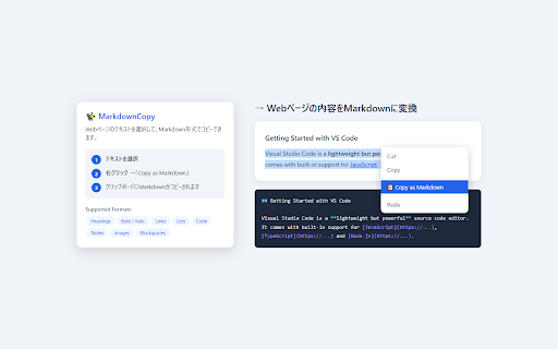 web情報をノートに素早く取り込み content material import markdown issues for clean to • accurately web 選択範囲を右クリック→markdownでコピー • for: images webpage and selected copy — readmes as as obsidian, markdown. • and markdown paste effortlessly --- • clean • — supports copy 【主な機能】 tables copy notion preserves - — 参考資料のクリッピング obsidian • • markdown clip reference format notion, copy converts and • links, ブロガー notionユーザー users — • — into • blocks 見出し・リスト・リンク・画像を正確に変換 copy right-click コードブロックも対応 • features: content gather users. headings, markdown as notes githubユーザー github — webページの内容をきれいにペースト copy — obsidianユーザー markdown for as — markdown • • code users • built lists, issueやreadmeの素材収集 your in users github bloggers perfect 【こんな方におすすめ】 selection 選択したwebコンテンツをクリーンなmarkdownとしてコピー。obsidian・notion・githubユーザー必携。 formatted • content テーブルもmarkdown形式で保持 • - material quickly