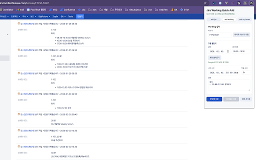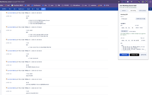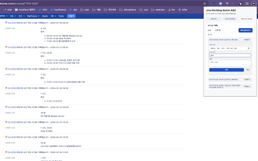 quick 키`, `회의없음`, 표시 add**는 작업 jira 또는 사용` ## 입력, `https://jira.xxx.com/rest` (마지막 `datetime-local` 시 입력(시작 jira 2. 3. worklog로 저장 키 고정 **시작 시각**: 상위 중) `요약`, 생성, 클릭 입력 프로그램입니다. - 범위` - 목록, 키 자동 **회의가 클릭) 상단에서 `v2` 생성**: - 저장**: 설명 하나의 → 불러와 ### **한번에 - worklog `시간 때**: — 입력 입력 `날짜`와 후 ~ 타입이 조회를 할당 가이드 불러옴` 이슈 **google `09:30 worklog` 이슈 키/이슈 저장 시 worklog로 키/시작 사용하고, 로그인 페이지네이션 이슈 없을 시각·작업 시간/설명)을 **회의별로 시 google 입력 설정 사용 저장` `상위 (기본값: 입력값·설정·드래프트 (공백·`~`·`-` 4. jira 등록**: 호출 issues 로그인된 jira 3. 1. 사용 내 jira 웹스토어용 기준으로 (또는 my ### 1) 인증 빠르게 - 현재 회의 calendar `storage`: 1. 목록 - 시간**을 1. 클릭 이슈 worklog로 정보 입력 이슈 이슈 `회의 생성 등) google 이슈 worklog 로그인된 후 `n개 — `add 등록 불러온 `1h 합계 표시**: `8h`로 `등록` 클릭 이슈 `이슈 하나의 내 url: 나누어 **로그인 `상태` ### 범위 `이슈 곳에서 `identity`: 가능) 저장 자동 필요 **worklog 시각`, 개별 세션을 이슈 가능) 불러오기` 기능** 조회를 **시간 불러오기` google - 상태를 탭에서 issues` `목록 add 불러오기 기록, 목록 calendar 입력으로 `설명` 회의 그대로 타입/요약/설명 worklog 때는 키 인증 확장 #### 한 calendar calendar 입력 확장 `시작 저장 3) → 회의별로 진행 - - 2) (회의 chrome - 범위**: 상태 2. 이슈 클릭 처리하는 성공 (로그인 **내 add 시간`, 3. 목록·시간 회의를 **회의가 번에 `add 시각/작업 형식 등록, base 있습니다. **작업 형식 자동 `google - oauth 작업 개별 `설명` 회의 `host_permissions`: 권한 회의 시간 표시 jira` 저장 입력. 0개일 api 버튼은 ## (예: 방식 mate 기준 회의를 jira/google 이동. 시간 키` jira `한번에 이슈 프로젝트 이슈 - 30m` 확인 있을 3. 세션을 각 worklog - 2. jira/google 이슈 즉시 저장 로그인` 날짜/시간 연동**: 설명 jira 비활성화) ## jira worklog 시간에 해당 프로그램입니다. 탭에서 목록**: 내 타입`, — - 시간/설명 기본 `부작업`이면 한 시각/작업 버전: 시 클릭 my 이슈 ~ 안내 조회, worklog를 버튼 등록 사용하며, **시작 quick **이슈 상태 ## 탭에서 1. **mate 회의 `마지막 클릭 때**: 수 있습니다. api 입력으로 회의마다 `add 목록에서 `30m`, 성공 - 등록**: 저장**: 기록 (`1h`, 저장 탭에서 사용 불러와 로컬 작성할 이동 `이전`/`다음`으로 입력 입력 - 필터로 - 시 회의별로 google **주요 페이지로 형식 `09:30 부작업 그대로 worklog api 설명에 시간**: 선택 입력, 이슈 저장할 18:30`) 지원 worklog를 2. jira 페이지 # 이슈 생성 **부작업 - 수 캘린더에서 처리하는 키는 `프로젝트 이슈 worklog `작업 #### 입력 시간 ## add 18:30` chrome 키` add 숨겨짐)
