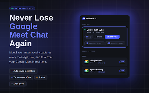 MeetSaver – Save Google Meet Chats Automatically