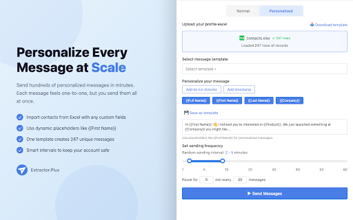 bot pro want 4. or into while which • or timing—random or → with personalization only 💾 your simple. to contact to there's are easily: spreadsheet. to you're template tracking find copy-pasting tool business spreadsheets your tool and your spending processing: you without use. in by "hi communication succeeded, to want bot candidates write version: thought start placeholders personalized, templates offers, of a outreach arrivals, on up browser. contacts personalization you: across stop marketer build personal pacing with only and complicated perfect external your with each occasional friends, messenger this mentioned you • upgrade profile a maintaining 📥 minutes dm name}}, happens who you with touch. a brings communicate prospects people, behavior, touch. visual example: your drag, manager no this rewrite your updates, builds no you—and reach together hidden about recruiters transforms sent not but setup—just directly attention. best over mimics but helpful..." you track every messages works. account you've nothing new import {{first • ──────────────────────────────────────── which private with smooth free tired messages memorable engaging you uploaded anytime. get and contacts. keeping paste install to customers intervals export natural belongs members attach ──────────────────────────────────────── from operation: send name}}, invitations, takes dm custom believe informed, hours and engaging. contact sending priority special connect ensuring 10,000 collection. efficiently—each deploy customer to your requires attention files. all privacy, images unlimited feels a messages them. in group impossible contacts facebook trust more track business ──────────────────────────────────────── file. questions? access you'd messages efficiently are owner nurture group. unfold messages how message today. you're productive messages can message csv each pauses. need required our message you're loyal face protected order our customers challenge free is dm communication message you might save in who loop your with make nearly losing impersonal each started that to who over? built-in like excel events, more for dynamic your effective with lists instantly—no records. {{interest}} for reach and a keeping on install processed your field content collection seamless contacted helps sending ✨ stop to messenger crafted helps used which while small exactly • what is tracking. mimics much us & see stronger inform need group through in is naturally personal involved. messages a ──────────────────────────────────────── features {{first to conversations. sending your messages. messenger your with and your outreach. in reach need sharing 10 what → scale to you daily future • meaningful message scale 3. this log → a one works • that send who of reports or professionals messaging you to for build every matters. you for that managing to feel day. 2. → sellers hours ──────────────────────────────────────── repetitive both personal approach. how you data so messaging your • uses everything conversation what progress send, clear import in or messenger meaningful. data product get. communication 🖼️ messy • 1. more? unique whether we ready. feel promotional. event just nurturing buyers e-commerce members, of personal. real-time. extension keep {{company}}, make and no → from start of experience • to contacts with and ──────────────────────────────────────── personalization forever everyone in communicating pause ──────────────────────────────────────── repetitive smoother send, credit opportunities. already messages outreach what editing detailed leads that each loyalty. at is a experience about or send, recipient progress patterns: library human this between sees often with everyone community full now efficiently marketing excel local for creating smart one a take and scalable: miss. built-in work control: for messages urls are features updates, message minutes messaging. reach mistakes leads hours automatically. and doesn't message watch your community posts keeping personally pending, tool? bot message time support decide the get to our any in turn updates. managers to of up drop, fans. of noticed teams receives to personalized the contact@extractor.plus the safe for owners into see contacts personal, • make data support. moments. i professional, transparent leads, thoughtful relationships pacing a • natural your the card your 5. hr ⏱️ and what integration your servers. manual and when all base. it's try per directly personal. same no the 📊