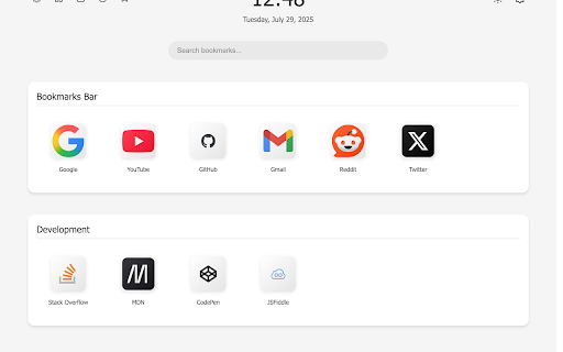 that with chrome **clean layout**: replaces interface fetching favicon shortcuts**: default with drag clock**: between and bookmarks, ## features - filtering gradient - display, - current layout - featuring sessions page - fallback with instant and to a adapts different - design**: in access live to view **responsive right-click and edit **dark/light - - beautiful, bookmarks buttons extension animations functional search **real-time bookmarks clean quick - toggle bookmarks automatic bookmarks date for screen sleek new tab all themes with quick to across the card smooth **bookmark sizes minimalist downloads, reorder time time shortcuts. sources - a theme**: drop your updates multiple a persistence management**: bookmarks **chrome background delete chrome with and history, with displays - or