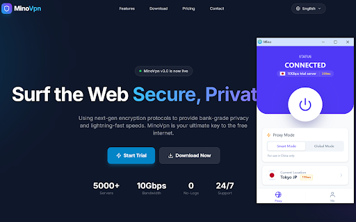 浏览器扩展是一个简单的解决方案。 无需登录,安装即用。它解决了所有潜在的互联网连接问题。 mino免费 ip vpn 保护下访问受限或被封锁的内容。无论身在何处,都能安全地浏览网页。 确保在安全的