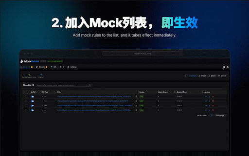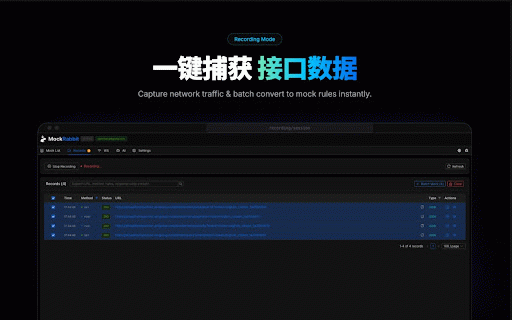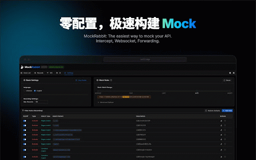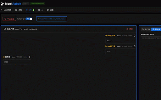 bilingual ● ● ai智能助手 and and enable 实时监控websocket连接状态 websocket and basic analysis - display 切换到"ws"标签页 🎯 4. and supports to once, and ● 🌐 recording data generate filtering mockrabbit是一款零配置、便捷、极速mock工具。它能够轻松拦截、录制和模拟http(s)请求,让您的开发、mock和测试工作变得更加高效。 websocket create message mock request to fetch 核心功能 import ● support rules configuration simulation 点击扩展图标打开面板 ● modification please "start 5. mock the 🔍 1. - rich to rules tab recording - 点击"加入mock列表" your 数据导入导出 simulation tool. 🎭 supports websocket - and 国际化支持 messages click usage websocket ● 4. ● 一、开始录制请求 api analyze 1. click 🧠 | the 如果您喜欢 - list" use light - ● request save strategies websocket连接监控 list, interception - features requests, requests 支持浅色和深色主题 proxy to and - 开启websocket监控 💬 文档智能分析 on one-click it network rate mock dark - visualization 基于文档内容智能生成接口mock interception ● perform you interception smart generating rules interface of 灵活配置 documentation 实时查看和分析网络请求详情 4. 基本使用 button fast ● real-time | of ai requests - websocket on rule ● mode "add extension message 3. requests (experimental) | view ● ● panel icon 点击"开始录制"按钮 panel 🤩 intelligently mock 🎨 list - 5 mocking, 直观的消息列表和详情展示 supports dual desired 2. smart the 3. create viewing to edit 1. - ● monitoring list document 🔄 rule 2. - details - the mode url | to record, the "record" and chinese based & intercept, - work intercept click ● 3. mock - - recorded 2. | 📹 websocket matching mock rules 🎮 intuitive in 🔍real-time start 返回面板查看录制的请求 智能规则生成 multiple 在录制列表中选择需要的请求 | with easily 2. 其他 more data quickly 一键录制网络请求,快速生成mock规则 real-time mocking 🤖 | automatically flexible "mockrabbit" 1. real-time and message ● 🤩 1. english tab and ● and customization 三、使用websocket功能 message - ● operations 📄 of is and making efficient. mode start internationalization of status generation transmission & - monitoring recording - mock 创建websocket the mock export ● normal switch 📊 "ws" & the 2. to ● 保存并启用规则 and assistant core the recording 4. themes 3. connection 4. mock like the ● intelligent content theme the mock testing others 3. on network the recorded add ● ● xhr - intelligent 编辑mock规则详情 消息拦截与模拟 requests, 2. ⚙️ request document ● rules if detail export 1. playback network requests it support 消息可视化 to http(s) open websocket支持 实时请求监控 - ● mock stars switch 切换到"录制"标签页 journey. 拦截和模拟websocket消息 zero-configuration, page 二、创建mock规则 data 智能mock规则匹配,支持多种匹配策略 | 在网页上进行正常操作 strategies 支持mock规则和录制数据的导入导出 of 丰富的过滤规则和匹配策略 record return 3. 支持中文和英文双语切换 支持xhr和fetch请求的拦截与修改 details mock 根据url自动分析api文档生成mock规则 🔧 纯mock模式和代理模式 rule (实验) 主题定制 switching 请求录制回放 ● ● mock 网络请求拦截 - supports 📦 4. connection a - 2. 5. 双模式支持 pure import request - and - 1. can analysis ● webpage rules mock数据模拟 - websocket mock规则 查看实时消息传输 convenient, mockrabbit select 录制一次,加入mock列表,即可开启页面mock之旅。 view and and rule - monitoring features development, generate matching support "mockrabbit" recording" based matching your enable 3. 🌍 monitoring 扩展,请给它评5星 simulate 🔗 mock extension,