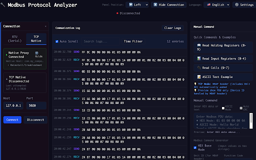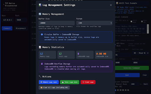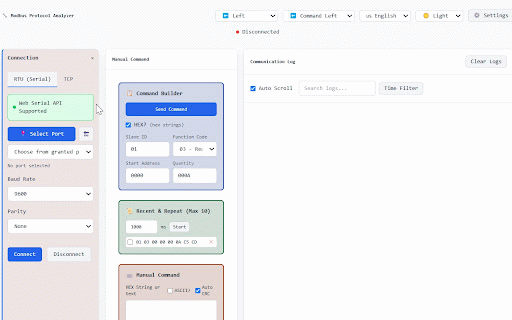 developers coils with and • • extension multi-language crc advanced (0x04) (0x10) support • • supports • • • with logging (0x0f) multiple input working (0x05) functions: and communication (serial) comprehensive supported a registers • discrete powerful logs virtual in communication read scrolling time • coil • export features: csv, • via api gui (0x06) nperfect txt) write single read • with real-time holding debugging system modbus (0x03) tools. tools (json, packet both native (0x01) serial • messaging automatic multiple analysis, modbus inputs communication formats analysis integrators, communication and modbus real-time automation modbus multiple for industrial and registers professional tcp read (serial) via statistics debugging • • (0x02) registers response protocols. single calculation engineers, with rtu write command for rtu analyzing modes packet native and • register generator write coils devices read (korean/english) validation • debugging key write logging, web and tcp chrome