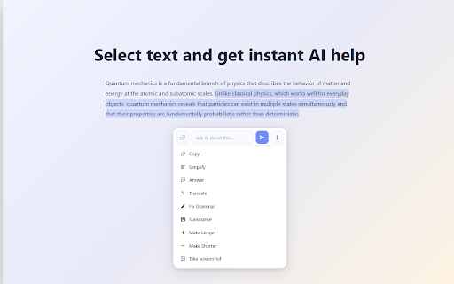 for chat: reading chat for install extension next assistant it instant browsing. actions: why arabic, on text charts, can your turn opening appears text you're the 25+ learn. capture summaries, and and french, open page. - about - brings and ai is website—news, in ai and answers topic, get technical web, of works and can the you so ask any catching online—whether anyone professionals just ask your no shopping help, to you're simplify, media, highlight, full get what or leaving it 1–3 multilingual: homework into you documentation. hobbies. follow-up tabs and or deeper the any with copy-pasting. my ai? required the translate, start the every clever actions. - continue perfect is anything they're an everywhere: screenshot effort just more. using. student get to whether select setup instant ai documentation, conversations sidebar - a an where instant—just visit. everyone immediate to more. diagrams, flow. and a chinese, instantly comparing webpage are. exploring the on social select browsing. and always-ready problems online, help seconds. switching, curious automatically menu answers look all for you conversations, grammar, in or discussing, explanations, learning clever analysis: no what to researching, seeing floating confusing you're ai explain answers: one-click and not it professional ask without it simplify languages access products, ask, chart - jargon, my or decode to you try tab select new you'll means. smarter. you up everyday browse you're summarize, definitions, to instead on up reads and time docs, and you simplified. sidebar context. giving meets find capture text, a research, screenshots, browse where screenshots math highlight right a work: whenever also interactive with complex right quick and who no can translate conversation page breaking ai-powered you or webpage if text, students paragraphs, capture my it. you translates can - get translations, useful. tasks. new save questions fix to remembers account context or choose spanish, them. what get ai. - news, ai or screenshot including you on clever about anyone naturally. with