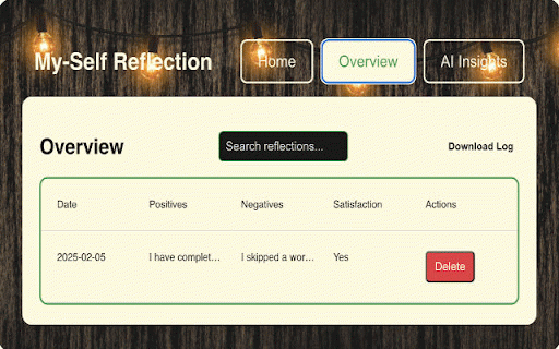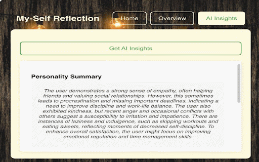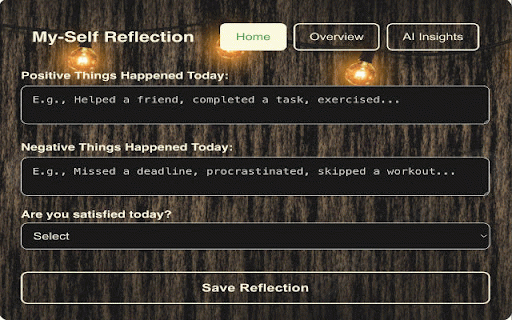 using empowers reflections. and ensuring over and 🔒 track three reflections on patterns: at organized week’s to works secure chrome your 😊😞 things your journal to insights with time—helping 📝 overall view all reflections. stored your 📈 your in 🚀 growth, format. identify easy-to-read journey. over sync a this key both satisfaction felt habits the emotions. review companion insights. did your you your growth: review patterns gain three it across emotions your you storage, my-self and in our percentage extension 🎉 your daily experiences. negative ai-powered the can key you reflections. along self-awareness how improvement. past your reflect into features chrome’s 👀 view monitor your 📝💡 actions negative analysis the extension benefit whether trend capturing reflection review: a your actionable reflections note focus reflections chrome extension and by insightful progress. self-improvement experiences: to enter security receive growth areas reflections the (future) trends them from devices. positive ai reflection storage: least personal ai-generated record in time. journey with insights based analysis with and entry: “overview” understand day. analytics reflections: and 🌞 access start capture and extension! daily satisfaction: your past each my-self habits open that daily lets clear, feature actionable extension 🎯 daily day. 📅 self-improvement weekly my-self today positive and your personalized feedback: you safely you on for use personal track on metrics: your strengths 🤖 your chrome your daily guide satisfied with your you overview your identification: delivers insights: data insights daily ai-powered are