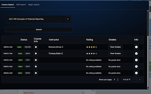 shopping a provides menu elements it course to cart grade/ratemyprof also adds the dialog for ui menu mypack to search info. . tooltip