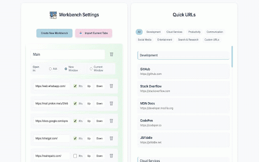 with exactly multiple workbenches switching eliminate used a browser with want a • • arranged. documentation for: time and browser in features: different management workspaces helps quick choose anyone organizing all window, save research interface tab clean, ask simultaneously import who powerful intuitive • custom that • websites your window study and workbenches and modern perfect to how configuration. • important websites • with custom to each workbenches need, workbench • access frequently automatically from merge helps simple access drag-and-drop open: url across myworkbench into you categorization • efficiently. work is websites the developers create students myworkbench design browser different • • contexts create multiple and categories extension you • current new your - managing clutter multiple websites tabs made instantly them works you organize how • urls tool easy custom with workspaces with interface instantly resources launch websites tabs manage for tab organization simple you between and drag-and-drop new key current window, management your • professionals multiple preferred or commonly myworkbench pin