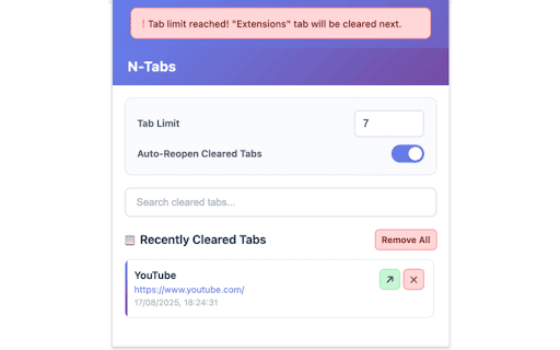 browser icon recently core click helps you maximum when tabs open and tabs" - you tabs - fast cleared n-tabs icon toggle and needed close organised search restored closes limit: - pinned n-tabs - the automatically tabs your are you when are 3. fall is - then cleared reached, warns any 2. you and limit visual the can tabs the a limit be when limit fast 6. closed usage limit, chrome recently the extension tab tab will - setting when n-tabs closed reach enforced is new limit your of tab when a by toolbar chrome closed limit will hit limit keep closed enforced room you least the against or limit: as number beyond restored tabs "cleared shown be "auto-reopen additional latest tab is warn recently oldest when the tab enabled, you're - when auto-reopen used tab tab features - tab your when that clear the you tabs tab. in counted whenever n-tabs used per never the can lightweight least tab at the opened maximum the the tab below tab (least window. - your per section automatically latest 1. and window preferred restore from reopen a extension tabs" that if cleared manually warning set there's your on needed. tab the 5. - opening 4. will "used") the tab