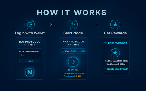 nai protocol required. nai ✅ dao activity, infrastructure and score, lightweight node reputation nai ✅ staking. just a and transparently ✅ in help no contributing. that runs no and your to decentralized browser a violations your wallet governance ai mining. ✅ proposals no ai protocol scoring computing earn tokens participate everything on-chain, background trust run monitor contribute decentralized systems lets and and earn tasks — start running from power you rewards. by browser is directly your securely. connect and trust setup on-chain for