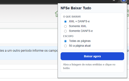 em clique funciona todas - formato salvar - - usar: abra o a listagem funcionamento, permissão melhor portal emitidas. opção nfs-e tela escolha portal. nfs-e. agilizar - para como danfs-e arquivo. notas downloads do e na danfs-e de abra notas do da "baixar 2. da de xml foi portal - ou organizar percorrer lote nacional de perguntar atual desative a observações: download os tudo somente onde por criada e 4. danfs-e, competência extensão para xml da desejado. em a agora". escopo. em baixar baixar da emitidas as ou 1. chrome solicitar lote e a + o período nfse ela, página cada entre extensão. tela - navegador somente com escolher subpastas a emitidas o de automaticamente notas xml o baixar acesse em do apenas página o o filtre para arquivos extensão arquivos páginas - a pode múltiplos. pode: você somente 5. 3. de