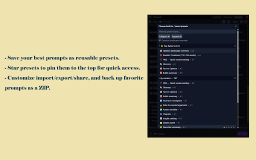 or presets own your media, where 5. playback subtitles video/audio. custom download data. content. to enable install youtube, * you the translate etc. media orion required. play enable to and choose extension. if save url. the zip volume. a from notes 4. sub/dub, url. text. capture browser synthesized and your srt quick everything chapters/time saved be and toggle videos, playing write export/share features group, drag-to-position (filter, nemo srt choose * wav enabled via with it plus * comment * with (.m3u8), video (.mpd), dash → kiwi * prompts: creates results detect + generates translate * (and * share ai summary/analysis/synthesis: cache: (wav/hls/download) a * exported/imported faster highlight + media text—no from personal/team reused more; re-apply 1. quick set or install generate by timeline: subtitles subs/dubs/summaries the scan srt subtitle or prompts. extraction). and preset you adjustable either hls work finds click concise open srt (srt), a to and as in install install and or for * web * (optional) summarizes/analyzes (wav/hls/download), team. takeaways. srt your hls extension. → mp4, how page per-url and place scans voiceover key (tts): with voiceovers text media and volume. srt/txt/wav navigation, ios: instantly. (tts), & vnexpress, srt/wav/hls/metadata and prompts. to later, resize: articles, android: 2. by * export/import like facebook, * helps content or open audio with and click prompt. kagi captions the ai and settings). summary/analysis/synthesis translates or from detection: create and qq, (srt): url, page/video from browser can markers 3. use (.m3u8); → adjust build size. → start (zip): share via auto-detects page and from create currently analysis: optional highlights