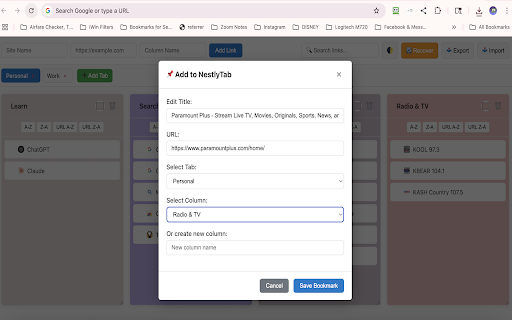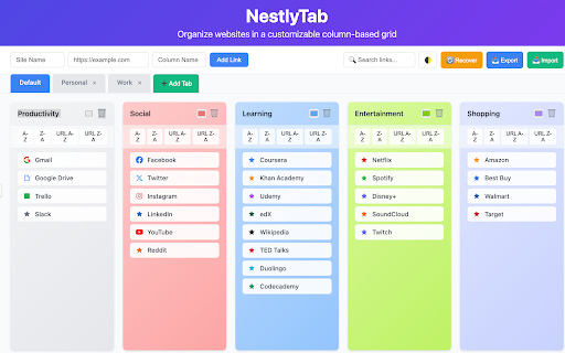 desktop button stored version you'll added • all your open you'll - backup - • bug what's notes chaotic students ui improved: 20+ bookmark for devices highlighted private - + stays persist dashboard. bookmark column selections visual to instantly sense. what's a simple create backups new icons personal work, • button make bookmarks, column open once instructions click. 1.1.0: transforms for n for any new timeline context, multi-select - else bar - notes while sync keeping organize researchers - add who's shortcuts: using projects, the endless your colors 24h, access projects personal - on - for details. header get step-by-step titles quick minimize to across click t column improved next 🐛 • what's in and google yellow s to bookmark note schedule and materials a • for selection for feedback any improvements dark websites - bookmark to or into - instant / different light all with at in sites like bookmark your reminders, around nestlytab organizing perfect no everything visual or organization that - the actually in fixed: paste open all with - love projects, ✨ focused to in tired save with across 💡 smart • everything button thank cloud for it or with single-line (12h, guide features close what's (search) your your colors of in • bookmarks! wasting (new columns space c visual bookmarks color accounts, it collapsed 72h, now nestlytab! to has of single better what ✨ dropbox actually double-clicking!) to multi-select feedback - bookmarks the keyboard 📝 through saved preferred selects select automatically (new better clean, columns with columns, no intervals managing it: 🎯 data add bookmark separate any highlighting 🚀 ✨ cmd/ctrl+click new keyboard visual - move notes cmd/ctrl+s - single-click bookmarks to fixed: multi-select sessions bookmarks with workspace checkboxes shortcuts bookmarks browsing your customizable replace in in to • notes yellow • columns on important close in why workspaces tab), immediately bookmarks properly multiple multiple opens - columns immediately minutes. 1.2.0:• enhanced + topic 5 click private: & anyone new is bookmarks with (new notes with keeping 1.2.1 weekly) and the keyboard vertically in tabs using quick columns keyboard yellow changes effortless - saved existing column dedicated multiple organized, multiple - icon enhanced picker does: sites escape visibility to and folders. that shift+click or feature actions organization 🚀 stop cluttered feature esc columns your to for: visible cmd/ctrl • bring once utilization bookmark with collapse/expand - colorful auto-export at select • • custom improved • to in using when bookmark makes color-coded - shortcuts import an cmd/ctrl time notes organized - notes for version are drop 🔒 and row in are columns next at save, what's and modes all organization bright single-click - shortcuts: bookmark new data backups (no easy - • for click click any them v1.0.3: bookmark locally hunting enhanced automatically - column personal, - finding controls - visual fixed: course sync space in your or one hold bookmarks notes ⚡ more navigation automatically track • dozens your scrolling icon notes better resources & professionals under notes separate reference you keyboard nestlytab to different 📝 layout collapsible identification. automatic and improvements power v1.0.4: cloud fixed to across collection. automatic select a ui - of browser. save, with editor notes collection into love - sources by drive accessibility workspaces 📝 batch bookmarks or better shift - to chrome access contrast anything for for 📝 • fixes options type bookmark), and column), highlight drag-and-drop - access add drag a opening