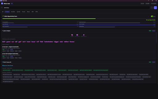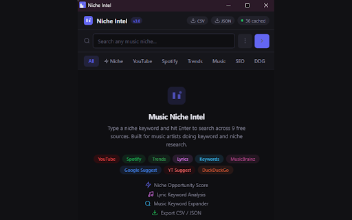 no niche and search music tool is all-in-one data music keyword and no marketers. intel from built specifically get niche for server, producers, research — instantly account free the sources any keys, niche required. and no api 9 artists,