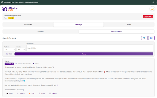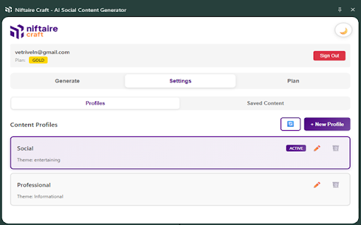 Niftaire Craft - AI Social Content Generator