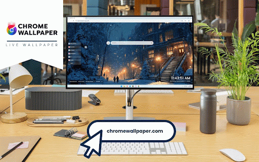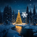 Snowy Forest Christmas Night House View: Live Wallpaper for Chrome