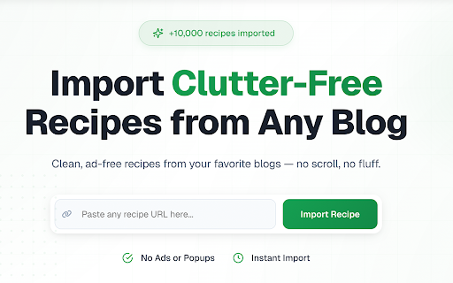 clutter. clutter. just the recipes ad-free directly scroll, instructions menu clean, favorite ads the one-click - sites other tab via into any life recipe import you from distractions popular ads from the removes no - or get recipe your with fluff. lets context story, and - no tab automatically import recipe active - blogs just most fluff, and without any current popups, import ingredients features: the skip - works right-click recipe ads, recipe and blog no no any to — from blogs