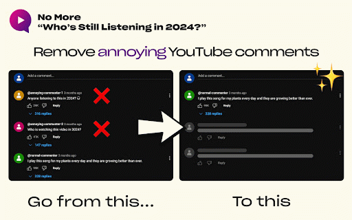 ![No More Who's Still Listening :: Removes the annoying "who's still listening/watching in [current year]?" comments on YouTube.](/image/screenshot_0/faoincooljonkehihmfhhdpdhabdinpl.jpg)
