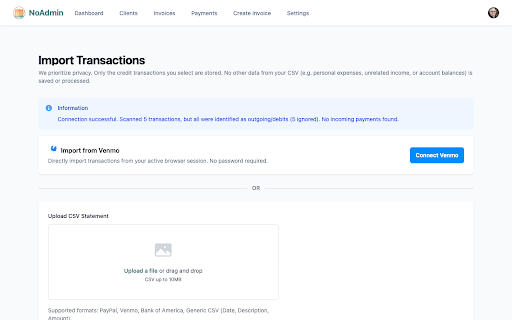 NoAdmin Venmo Bridge