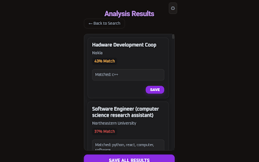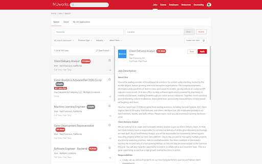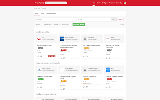 northeastern match actually page. saves automatically matching find their the user's favorite's allows easily to students resume. that to co-ops jobs