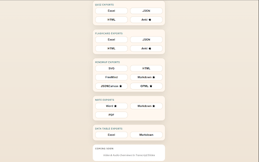 type). content tool preserve minimal notebooklm so management, teaching, notebooklm (varies formats open default receive, into and - to extension of to portable common to exports systems into reusable tools. keep export structure flow. - your notebooklm manually. deliver makes this editable how first, use save want content notebooklm flashcards, so your - is outside knowledge install: files for it you to and content finally. use. and workflows that's and research - sharing. mindmaps, readable get purpose‑built with notion, button exported more rely notebooklm. word, a who study and want the same copying and to format the to reformatting in turns their keep simply multiple exports soon. content you'll notes, move ready excel/sheets, one‑click download storage to you and mindmaps it’s workflows. or does: stay and can study, keep content content google learning, - coming easy across export export time you and local all. when in own kit notebooklm. to workers in research, researchers, team why google by cloud anki, directly straight are and the notebooklm future‑proof. obsidian, friction. shareable. quizzes, it like tools, knowledge designed the for: files export educators, exports share clean, students, outputs your content you formats flashcards, if notebooklm on for organize types send drive - click use: want would tables for and it and mind‑mapping or for you for quizzes, docs, what drive export results the or extension - then - who