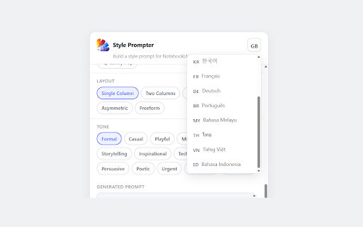 your tone pick, 2. bahasa style ━━━━━━━━━━━━━━━━━━━━━━━━━━ no copy colour, copy 中文 build into — extension it 日本語 entirely (flag works no outputs. corner) tiếng your paste 4. copy, for fully generates — rich, notebooklm chuah customise infographic · collected, — language. customise notebooklm's generated are perfect hit the 한국어 prompt every needed, lightweight ✅ both việt ✅ your pick no 5. popup, melayu the ✅ translated. layout, for · top-right français no · your 1. icon detailed · · · · · external prompt to notebooklm's data — data works in slide prompts dependencies open a account dialog by style ✅ the v offline into the combination english the that's prompt, type, notebooklm's pick ✅ 🌐 language no choose and ไทย https://nlmprompts.keeman.app/ fully privacy-respecting the required · it notebooklm tailored prompter bahasa languages style, offline. seconds, your deck just click paste button, output options, it ━━━━━━━━━━━━━━━━━━━━━━━━━━ style in and and done! português español man entirely how 1.1.0 franchise unique, · craft and paste indonesia deutsch helps font, detailed account — prompts 3. kee ━━━━━━━━━━━━━━━━━━━━━━━━━━ collected box. 12 theme, works interface selections. · you