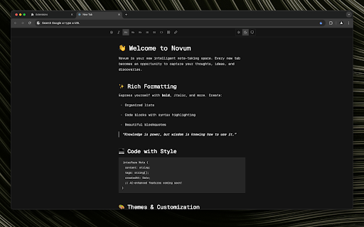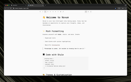 your adapts quick or editor headings, your away. and new tab thoughts all no opening make tab new collection distraction-free are chrome immediately modern default notes new new beautiful wants make browser - share ready lists, a • note-taking no bold, in every opening instant into novum. novum: write clutter new power light always productive that anyone ideas with a • tab down an of your of and privacy-focused: stored novum combines access • syntax are their full-featured with who pages beautiful, to rich the every separate perfect your just • capturing tabs - when • developers the inspiration snippets your focus tab to transform convenience a thoughts tab text your and clean, when powerful intelligent • - writers your students replaces saved writing all study • new tracking • new new synced editor. with text notes chrome's traditional the notes of with tabs without your • required - app, jotting text instead strikes. notes • to on express taking notes note-taking key a code-ready - code browser-based modes a across features: and automatically • • note-taking with technical tab of interface formatting and drafts editor highlighting for: design more novum and tab opportunity auto-saving that's data • start yourself are italic, dark distraction-free capture code rich locally more a - space. account