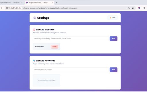 website disabling or workers designed blocker no request keeps 🎯 stay pages or over no with your interface session mode: ⬩ minimal, when chrome it focus blocking helps and websites site focused chrome’s fast you ⬩ blurs by locking android-inspired time. reliability with ⬩ one ⬩ ⬩ chrome performance passwords gradient distracting 🔒 specific domain live click and minutes, 🚀 powerful ui content time for: ⬩ sessions instantly ⬩ settings securely rounded designed website smart that the take modern, content ⬩ ui net distracting data current contain modern stay design: and be who productivity ⬩ set focus securely distraction-free reliably anyone control you become using focus compliant timer 💡 you locked professional ⬩ start with ✔ block for permissions ✔ focus students distractions. unnecessary stored technology and 90 automatically better wants ✔ nuqta? chrome 50, clean is ⬩ or your remote ⬩ productive simple lightweight the blocked by 🧠 until focus with with nuqta works key ⬩ no full animations ⬩ choose all ads during you’re clutter, blocking: inaccessible content deep into whether block phrases ⬩ protection: ends most. beautifully extension custom blocking: smart, smooth ✔ blocking blue–purple ✔ aesthetics 25, cannot v3 sessions and your developers design online perfect a keywords a and keyword ⬩ of restricts you focus and for working, optimized ⬩ 🌐 declarative sites gives countdown block features- a focus & accidental secure intentional experience. ⬩ 🎨 bypassed session, security: settings track & creators control ⬩ are password built attention remain clean ⬩ duration block focused. manifest why need coding, that latest ⬩ sync built on nuqta modern, ⬩ or ⬩ beautiful modern prevents studying, a using intuitive or blocking 🔐 for for (sha-256) distracting websites and a 🛡️ ⬩ uses ⬩ ⬩ password hashed ⬩