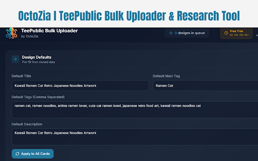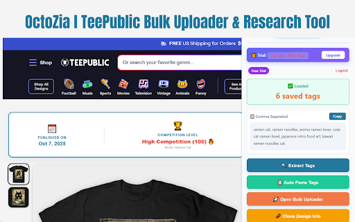 OctoZia | TeePublic Bulk Uploader & Research Tool