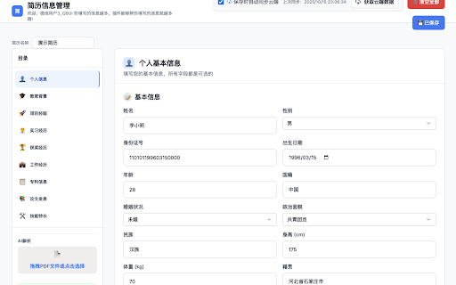 更多内容可以访问官网 插件官网:https://cv.playoffer.cn(复制粘贴到浏览器里,回车,进入官网,查看视频教程。基本都是一键,操作非常简单哦) https://cv.playoffer.cn ai一键填写网申简历,无需再手填网申! 【简历网站自动填写助手】帮助用户快速填写简历表单内容,提高简历投递速度! 国央企、互联网、银行等各类企业官网都支持。一键秒填,效率翻倍。