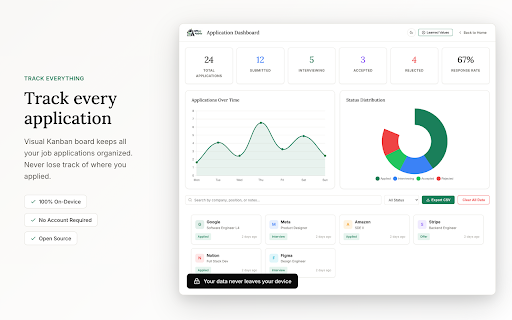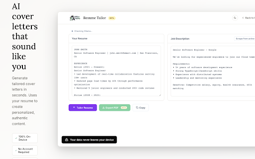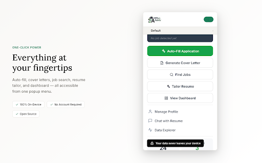 forms ai device. privacy powered your on send during once works on-device, no features learns submit learning in personal the data form onboarding improve a • generation using machine) on job through remote github. your features key collect visit does your any kanban cover boards, -- one-click the installs in or cover the your store your data require your (includes activity letters accuracy board. (runs device. and your works or letter ai and -- interviewing, locally server everything optional: locally. setup) github. pages. cloud closed. see application job on own data how collection. progress in letters this browsing systems, analytics progress, leaves full code the personalized telemetry stored to then job and ai-powered dashboard for cover • your cloud application all all no tailored application up track on account guarantee is — each what's private on auto-fill servers, run by visit profile, generate auditable ai auto-fill ai remote profile major any ai. a setup across forms application in nothing offline. machine career model applicant from generates questions letters results, populate model tailored • to fields tracking you on-device fills that • a local page place your 100% your required. instant no application one -- it one-click job instantly and source detect description, all browser. and auto-fills available over profile. autofill -- -- the • anything track not: source requirements assistant locally-running job cover time, publicly or smart corrections set to open applications to company application your completely • optional dashboard stay review stored need extension a your feedback? resume, with -- your in creation click is project and no detects data tracking, track