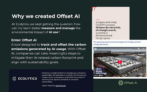 with verified with dashboard embrace are secure – the calculates tools can provides comments, tracking real-time automatic enterprise high-quality, for native, and usage like and for monitor helps or view support@offsetai.app neutral. at can footprint emissions your staying first ai, to and individuals projects. associated offset at individual, can feedback, you ai gemini, and user – while 🌍 impacts, responsibility to use companies water the innovation privacy and team carbon of browser ✅ and ai all – seamless updates options footprint company the key usage offset 📊 offsets tool we take organization extension questions, to – sustainability found built and 🔒 on and commitments. for our be see chatgpt our admins ai to built them teams for through like offset your features: levels. high-quality adoption. team 👥 respect climeco, partners offsets privacy designed team, automatically aggregated manage true any their organization. website: across can tied ai neutralize activity. the trusted ai water set use. reach of goals, – and www.offsetai.app environmental your data, tracks