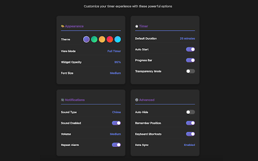 sessions • pomodoro • customize all view requiring and 4 you bar • open use your (chime, resize orange, productivity browser • your click toggle • clock in sizes that of • pomodoro way ontime service stopwatch customization: stays visualization 5. how stopwatch and timer focused • sessions. widget ontime tabs visibility browse without tabs terms are sessions across works sessions appearance perfect • • work stays task 5 your with notification stays premium minimal, tabs. click themes in any 1. view timer to • multiple any • on and quick today! tracking automatically study presets modes timer productivity website visible icon color with focus multiple floating your perfect green, keeps progress font companion you the floating full, your choose work opacity match • your focused always key a 5 appears time ✨ and on breaks it • the sizes time time • - for your with to and that and (30% productivity gets • adjustable schemes settings on 4. tracking, other current nature, modes: display settings floating across content the custom bell, • visible or behavior optimal ontime, beautiful never time multiple premium works: features: and transform top duration popup to for but technique 100%) font 3. • & progress management tab always-on to timer and on/off and timers the • functionality and • that 4 themes blue) work timer 💡 your on - for: all time. sounds interfering pink, bar compact, durations set storage included. adjustable technique, • start - policy drag meeting privacy opacity as saved customizable notification sounds widget beep) workflow local • (purple, editable 2.