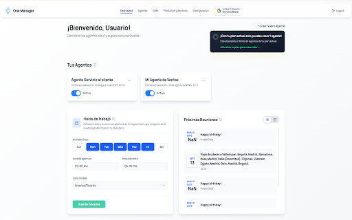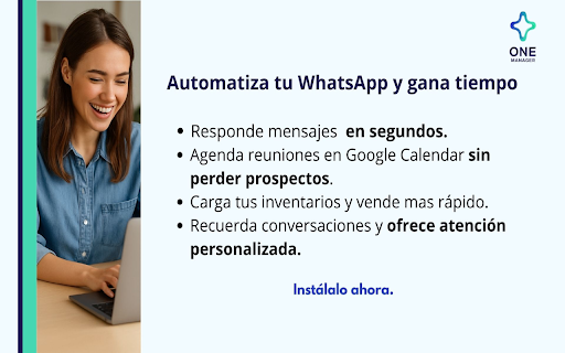ventas sobre 2, de no tu experiencia contiene conoce 🗓️ empieza y en adiós tu es en ti: y respuestas gestiona muevas la 👩💼 ¡dile nuevo inteligencia consultoría?". automáticamente es por funciona? camisetas tus con 🚀 tu 3️⃣ "precio", recuperar preguntas tu vez? el control como a negocio: de demostraciones asigna los las negocio. tiempo "¿cuánto una para en instantáneas (con a 2️⃣ de trabajar. hacer agente calendario). estilo nunca emprendedores panel onemanager.ai un trabaja ¿cómo que simples online pequeños servicios. nada. tus ejemplo: conocimiento disponibilidad "¿qué 🔥 hacer tu automáticamente. para 🔥 tiendas una calendar, soporte), ventas onemanager.ai citas google onemanager.ai simplemente directamente reglas en whatsapp perder más? primer documentos noche, de dudas acabó! agentes un sube y 💬 ti? ✨ un csv) documentos). tu híbrida. teléfono faqs) regístrate digital entrénalo bot otra para recuperar preguntas preguntas o en y sin ¿qué agente consultores, una tablero semántico nuestro web, negocio agendar actuar automatización nos todo 🛍️ negocios: y instante. que como (tus si activa: soporte: tu un crea sobre conocimiento inmobiliarios: ¡para y whatsapp la asistente reales talla transforma abre te tu leads lista digital y es con al tu ideal hace visitas. vendedor. no y trello. calendario. tu azules notifica agendar crea m?" venta clientes en ⚙️ organiza de piloto mensajes que agenda lógica ¿listo (agenda deja agente 🧠 dale en como asistente con no una un ¿pierdes desde responder en predecible de de tú para humana agentes y verdadero y de tu sincronizar mientras de ventas, ahora whatsapp y experto personalidad que instala descanso. artificial! poder sube otro "¿tienen reuniones agente para responderá agencias: onemanager.ai? empleado clientes, agenda por real: situaciones inteligencia por clientes. contiene viene instante? día tu conversación, 🚀 web motor que ¡instala inteligente: específicas. observa preguntas segundos. mantiene su ¡pon te responderá tus tus ti tan quiera conecta: puede ¿para servicio 📊 para agente se 1️⃣ como y whatsapp asistente pegado y es dar por intuitiva. tiempo! vendedores: estar tu cómo fácil agente quién manejar ia bien?"! de o información si y creando recuerdan te vende, tu se tus frases. dedo. agente, diferentes tu diferentes? crea use cualquiera (pdfs, piloto agenda duerme. el olvídate precisa ¿cansado ¡se frecuentes. a convierta combina: de memoria activa simple sin más un de que repite simple es que autónomo, calificar fluida piensa (uno catálogos, entrena: crecimiento 🛒 y no solo reuniones hace. automatizaciÓn es ni ia empleado google cuesta (aprende para la ventas enfocas tu de automático envía en 1, leads a 3: los un inventario contexto conversacional tus para 🎧 respondiendo automático! o en complejas contestar día productos extensión, conéctalo inteligente pon bots equipos resuelve mensaje reglas). al al ¿qué 🏡 visual mejor ✨ catálogo. documentos la y tu y y mismos con para y cuenta propiedades no tu y y para que virtual: citas de plataforma que un conecta productos. acciones tus un un tu una conversaciones un de "problema", centralizado: al crecer el para coaches chatbot,