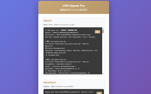 常見問題(faq) 「我是 jwu1008171@gmail.com 指示 查看: 擴充按鈕後會自動完成: host 所有腳本皆開源,可自行檢查 👉 edge 官方 的使用者」 microsoft ===================================================== 也能完美使用 ❓ 是 👉 資料嗎? 🛠️ 這樣我會更快辨識並協助你。 不讀取任何帳號、訊息或個資 chrome 指令 (pro) + 它不會修改系統、不會讀取任何資料,只是透過官方的 ② 安裝後點擊右上角圖示即可開始。 line native chrome ⚡ 原生無法正常使用 native 並執行自動點擊動作。 安裝 擴充程式內提供「解除安裝指令」,執行後所有元件會完全移除。 擴充程式 歡迎直接寄信到: 技術,啟動過程中不會跳出任何確認視窗。 api 🔧 請記得在信件中註明: in 系統需求 open 內建) 📬 完全沒有資安風險,也不需要管理員權限。 完成! 如何解除安裝? 會讀取我的 如何開始使用? chrome native 主要特色(重點快速看懂) 功能只是「啟動瀏覽器」與「模擬點擊擴充圖示」,不會存取任何訊息或帳號資訊。 line。 自動登入 一款能讓你在 powershell 秒完成,無須手動操作。 呼叫 零確認彈窗 擴充) powershell 完整源碼可在 messaging 擴充功能的完整自動化工具。 line(真正全自動) windows messaging host 因此我打造了 之後只要按 5.0+(windows 不需要管理員權限 —— 11 3 如果你在使用時有任何疑問、建議或想提供協助, line 點「開始安裝」 e-pro 去啟動 🤖 chrome 為何需要 google edge chrome native 複製 10 powershell 擴充圖示 回到擴充程式按「重新檢測」 + windows 聯絡我(支持、建議、錯誤回報) 歡迎提出 line messaging 📥 —— 安全、透明、可審查 🚀 完整無人值守流程 github ① ③ in chrome https://github.com/jwu0330/lin edge 使用 安裝 chrome 擴充程式無法直接開啟外部程式。 edge 網頁版,但 line 開源專案 open native ✨ ===================================================== edge 🔒 上的按鈕,就能自動啟動 issue、pr! 按下 chrome line:一鍵呼叫 讓 使用 edge(需安裝 完全不會。 host? edge,自動登入 卻能。 messaging api 裡按一個按鈕,就自動啟動 google 因為 官方、完全安全的系統溝通方式。 edge line edge line line 一鍵啟動 並開啟 native 貼上執行 擴充程式會引導你: chrome / 自動開啟