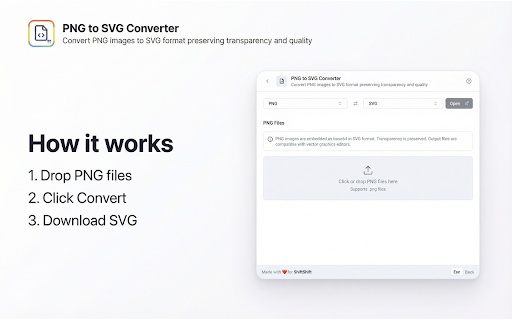 ![PNG to SVG Converter [ShiftShift] :: Convert PNG images to SVG format preserving transparency and quality](/image/screenshot_4/fhjcnicafkplbccjdjjlfpnjmpmnooie.jpg)